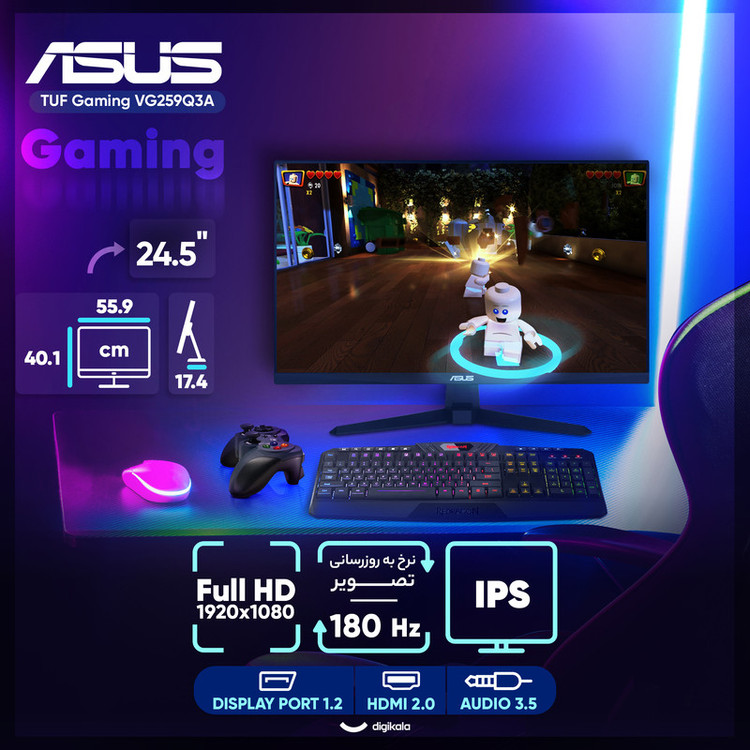 درگاهها و فناوریهای ارتباطی : HDMI 2.0 , DisplayPort 1.2 , جک 3.5 میلیمتری صدا