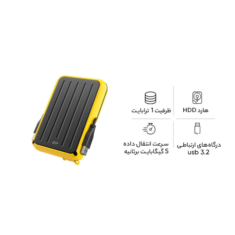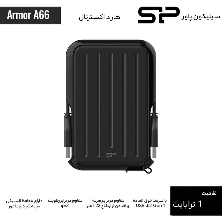 هارد اکسترنال سیلیکون پاور مدل Armor A66 ظرفیت یک ترابایت دارای رابط USB Type-A 3.2