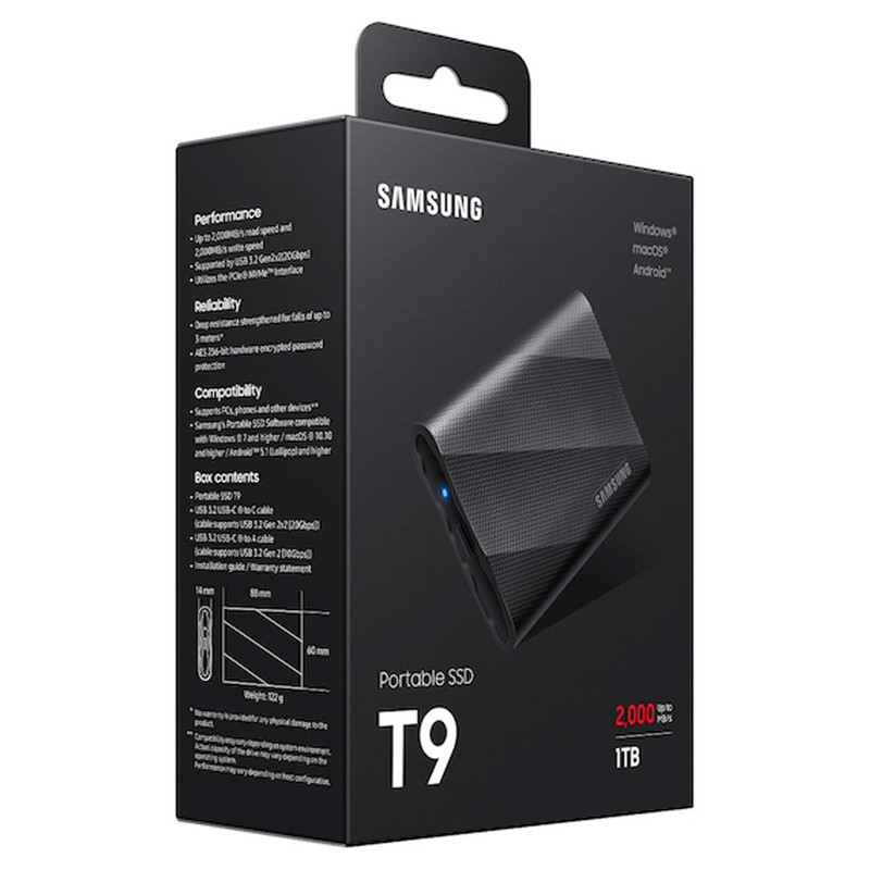 سازگار با نرمافزار اختصاصی Samsung Magician / رابط USB 3.2 Gen 2x2 (با سرعت 20 گیگابیت بر ثانیه) / پشتیبانی از UASP و رمزگذاری AES 256-bit / استانداردهای CE, BSMI, KC, VCCI, RCM, FCC, IC, UL, TUV, CB, EAC, UKCA, BIS