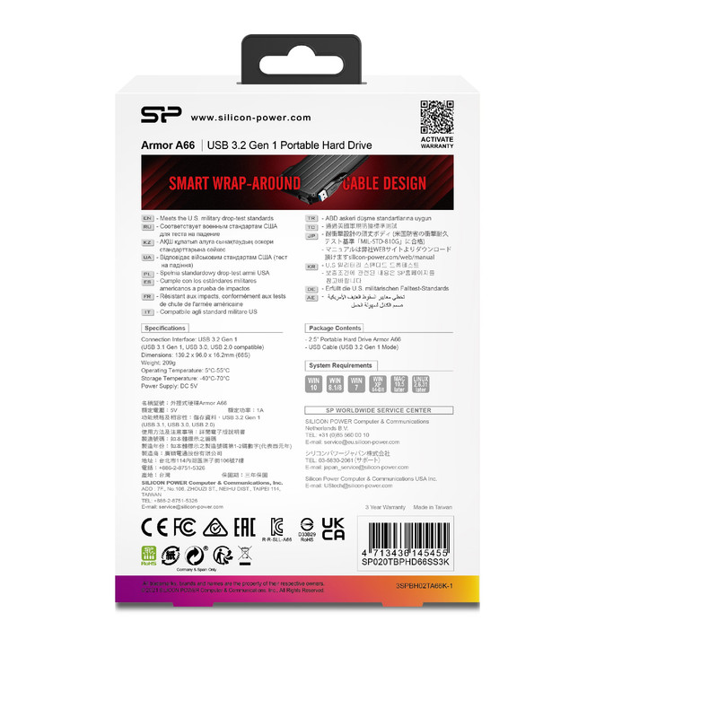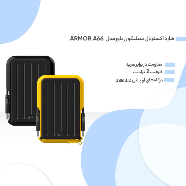 هارد اکسترنال سیلیکون پاور مدل Armor A66 ظرفیت 2 ترابایت دارای رابط USB Type-A