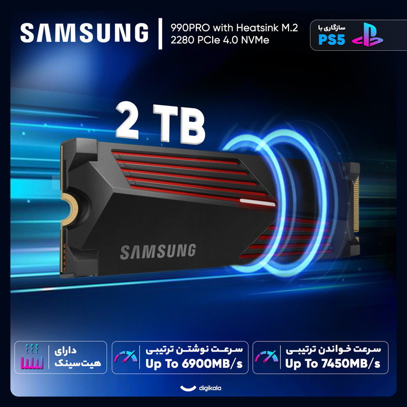 اس اس دی اینترنال PCIe Gen4 x4 سامسونگ مدل 990PRO with Heatsink ظرفیت 2 ترابایت
