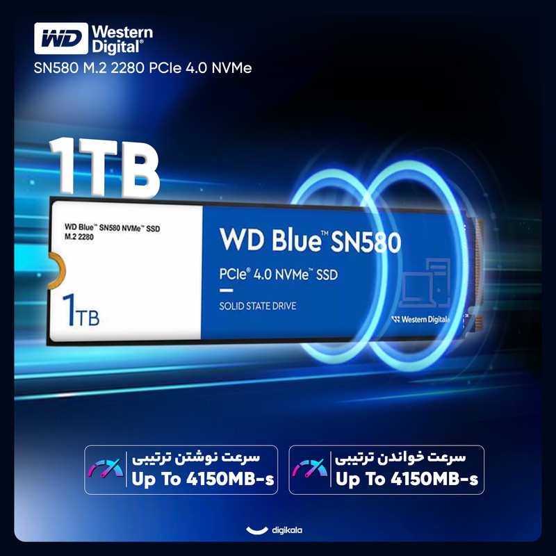 اس اس دی اینترنال PCIe Gen4 x4 وسترن دیجیتال مدل WD Blue SN580 NVMe ظرفیت 1 ترابایت