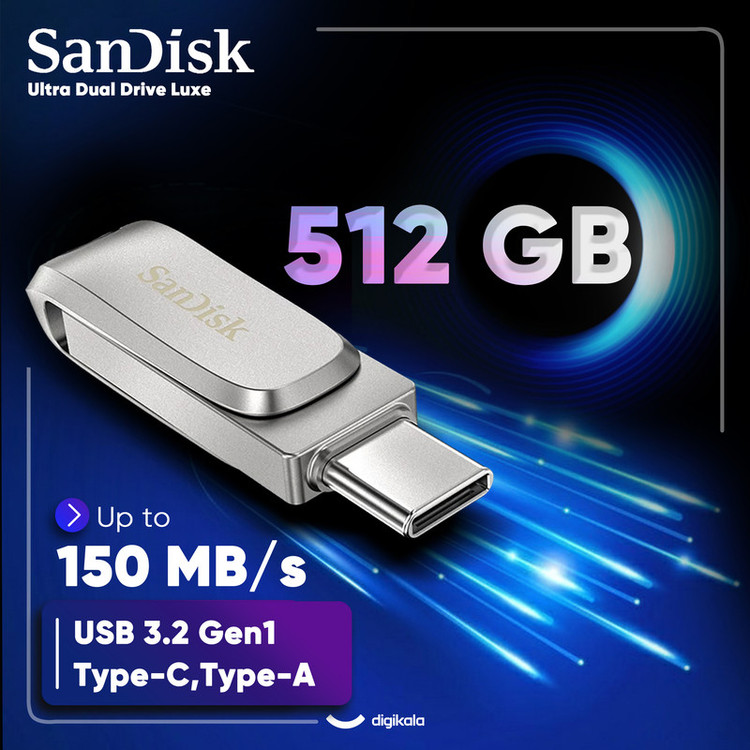 فلش مموری سن دیسک مدل Ultra Dual Drive Luxe ظرفیت 512 گیگابایت با رابط USB 3.2، USB-C