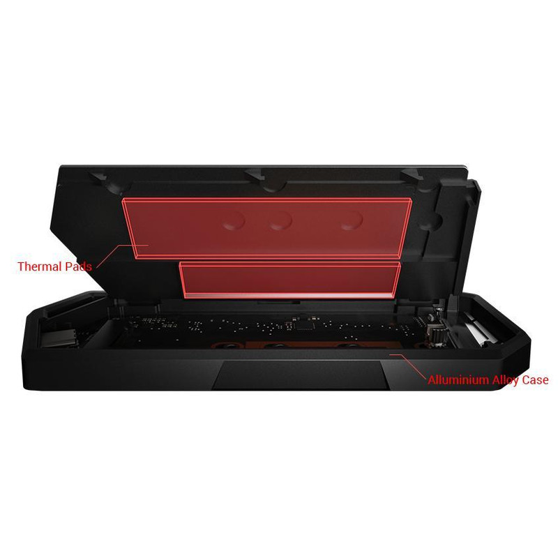 این رابط را میتوان سریعترین گذرگاه خارجی در سامانههای دیجیتال مرسوم دانست. یک محفظه آلومینیومی و یک پد حرارتی، تضمینی بر عدم گلوگاه حرارتی در ROG Strix Arion خواهند بود. هر چند که گذرگاه مورد استفاده به Type-C مجهز بوده و با این رابط سازگار است، اما ایسوس درون بسته بندی یک کابل USB-C به USB-A را نیز قرار داده است تا در صورتی که دستگاه مورد نظر فاقد درگاه USB-C بود، امکان استفاده از درگاه دیگر USB ممکن باشد.