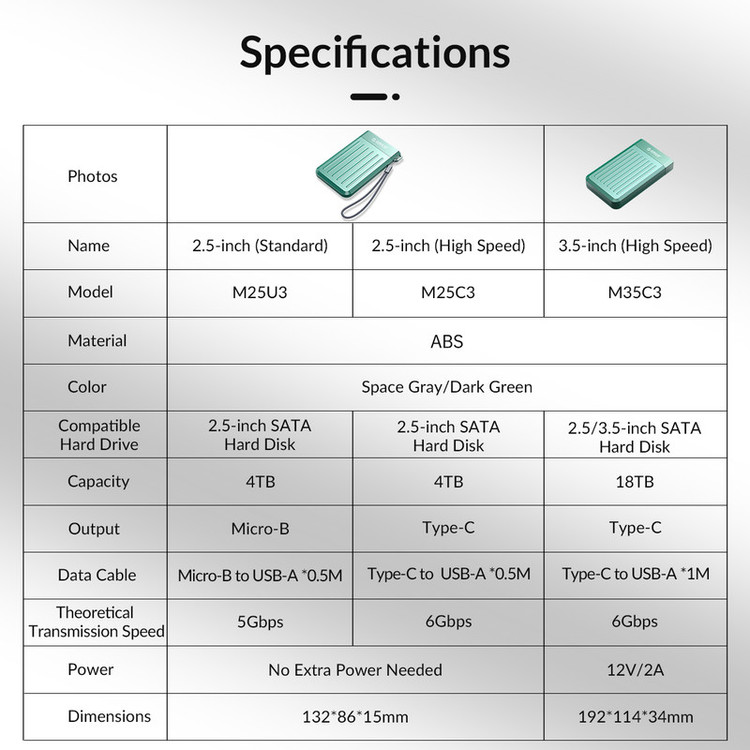 حداکثر حافظه قابل نصب: 18 ترابایت کابل: USB Type-A to USB Type-C سیستم عامل: Windows/Mac OS/Linux سرعت انتقال داده: 6Gbps