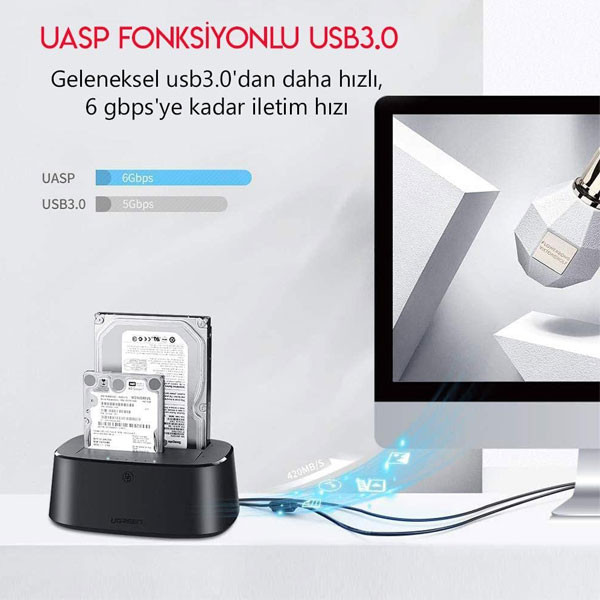 مشخصات کلی: - ورودی: USB3.0-B - خروجی: پورت SATA (7+15) پین - پشتیبانی از UASP، SATA 3.0 - پشتیبانی از هارد دیسک 2.5/3.5 اینچی SATA - دارای آداپتور برق 12V3A - طول کابل USB یک متر - رنگ: مشکی