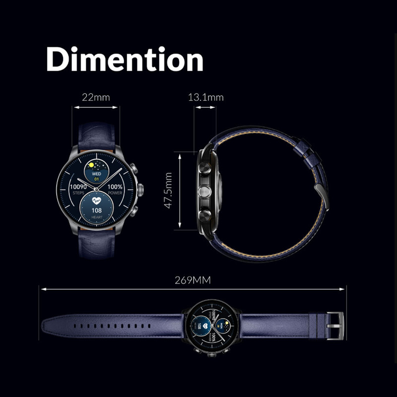 ساعت هوشمند 47 میلی متری گلوریمی مدل GX CLASSICFIT (LIMITED EDITION) بند چرمی