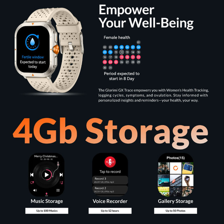 حافظه داخلی : 4 گیگابایت (امکان ذخیره تا 100 موسیقی، تا 12 ساعت صدای ضبط شده و تا 50 عکس)