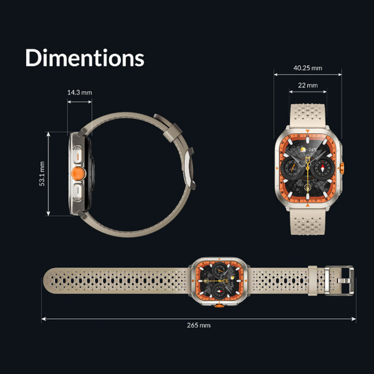 سایز قاب ساعت هوشمند : 53 میلیمتر
