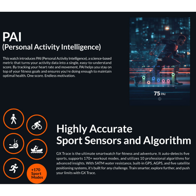 امکانات ورزشی : پشتیبانی از تمرینات مختلف ورزشی , تشخیص هوشمند نوع رشته ورزشی , محاسبه میزان کالری مصرفی