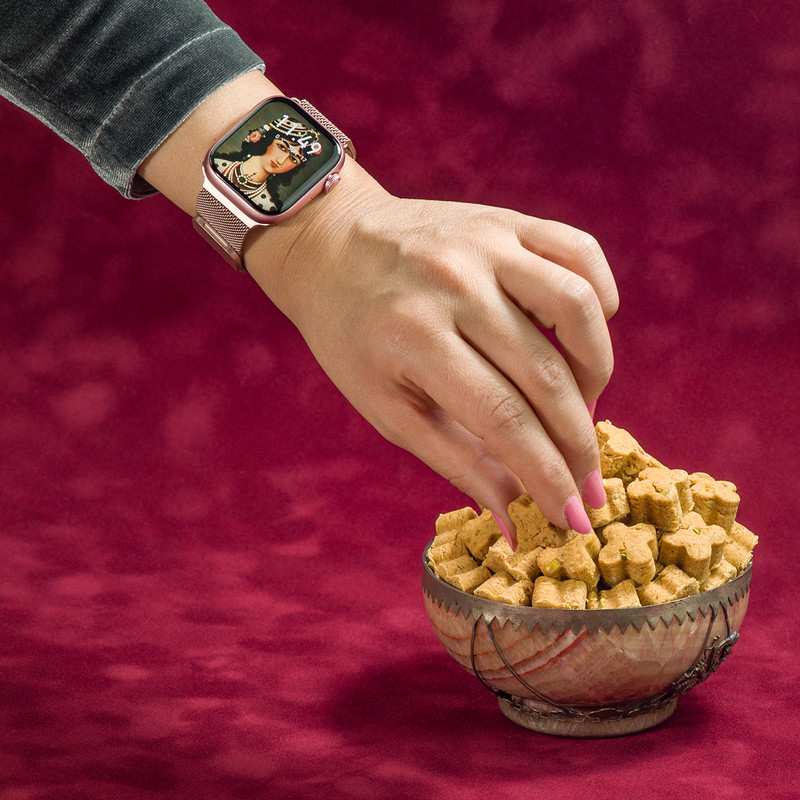 ساعت با بدنه مشکی با بند های سیلیکونی و میلانس مشکی و بدنه رزگلد با بند های سیلیکونی و میلانس صورتی ارسال میشود.