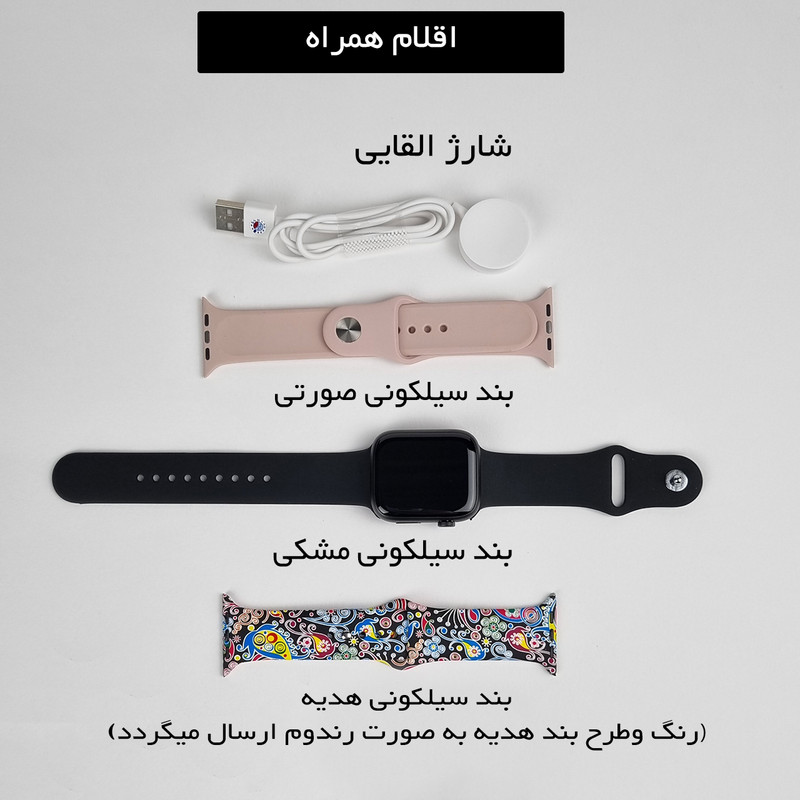 سه عدد بند سیلیکونی - شارژر ساعت هوشمند و راهنمای نصب نرم افزار به صورت فارسی
