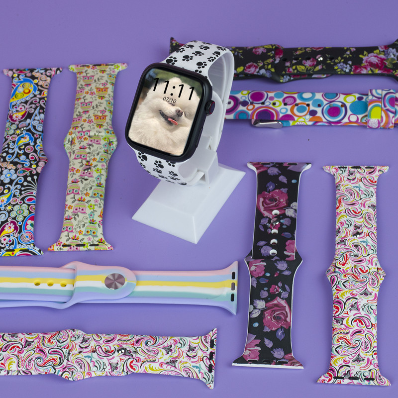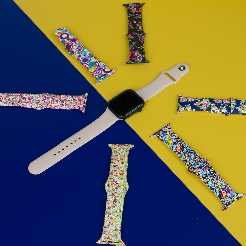 دارای سه عدد بند سیلیکونی که بند هدیه آن در رنگ و طرح های مختلف به صورت (رندوم) ارسال میشود.