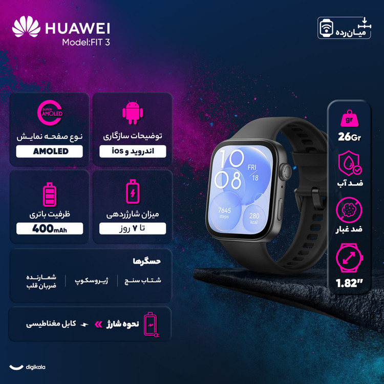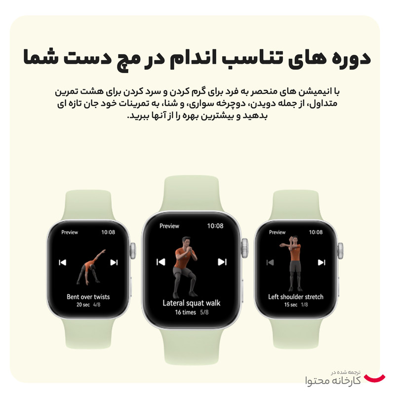 امکانات ورزشی : پشتیبانی از تمرینات مختلف ورزشی , محاسبه مسافت طی شده