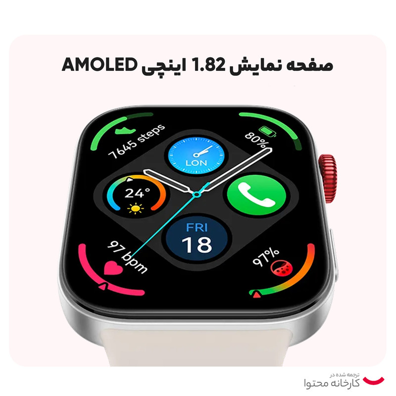 قابلیتهای ساعت هوشمند : کنترل موسیقی (Music Player) , قابلیت مکالمه از طریق بلوتوث , پشتیبانی از زبان فارسی در منو و سیستمعامل , قابلیت تغییر طرح ساعت یا تم