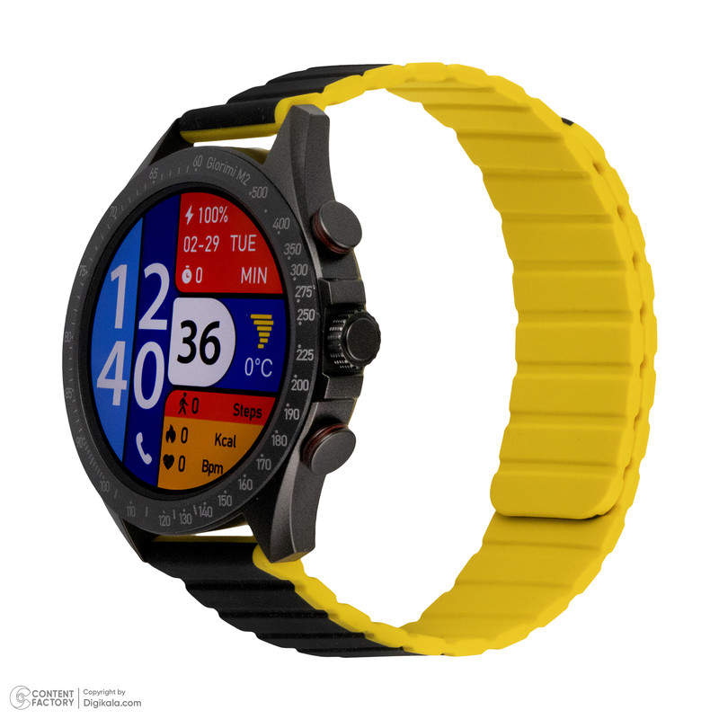 ساعت هوشمند گلوریمی مدل M2 دارای قابلیت های قابلیت مکالمه مستقیم، قابلیت مکالمه از طریق بلوتوث بند سیلیکون