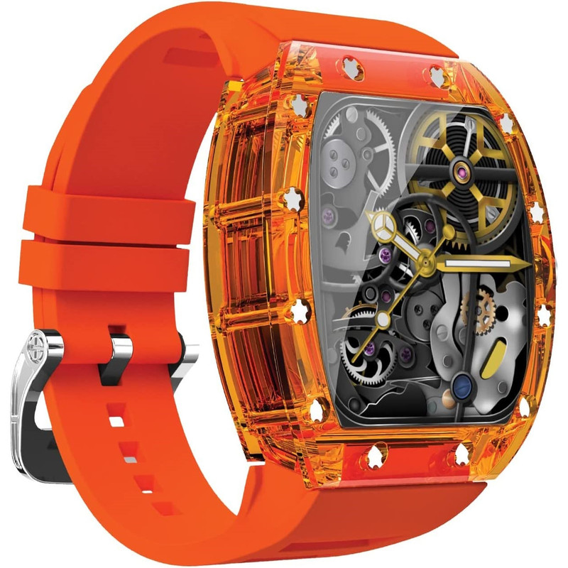 در سه رنگ مشکی سفید و نارنجی مشکی : دور قاب شیشه ای مشکی بند سیلیکون مشکی سفید : دور قاب شیشه ای شفاف بند سیلیکون سفید نیمه مات نارنجی : دور قاب شیشه ای نارنجی بند سیلیکون نارنجی