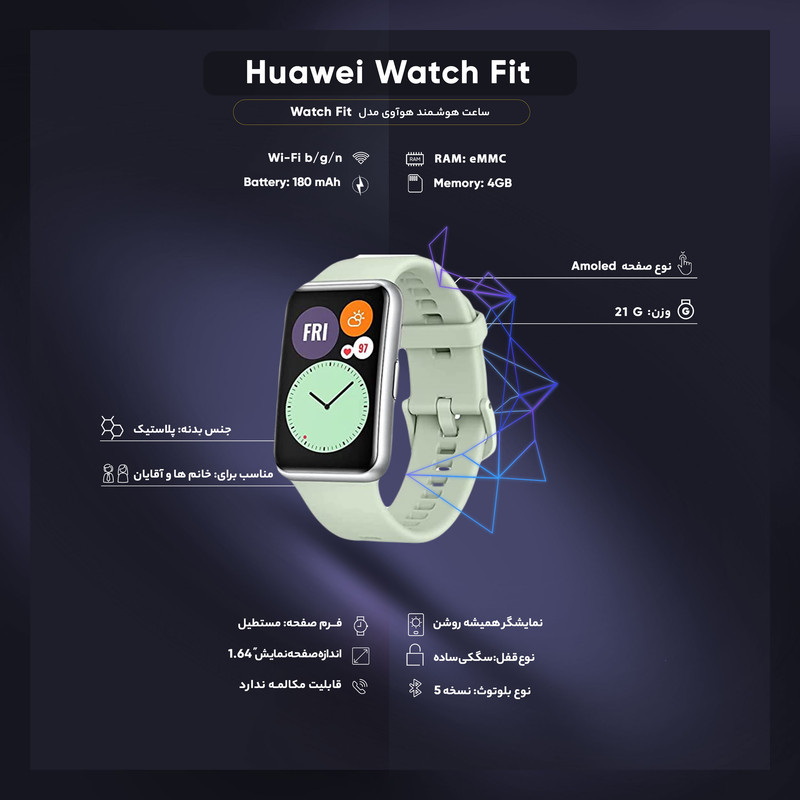 ساعت هوشمند هوآوی مدل WATCH FIT بند پلاستیکی