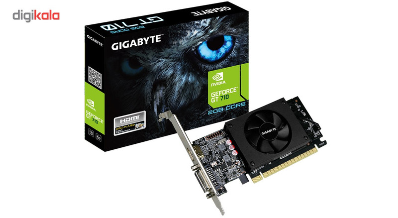 کارت گرافیک «GV-N710D5-2GL» محصول برند «گیگابایت» (GIGABYTE) است. در این کارت گرافیک از پردازندهی «GeForce GT 710» شرکت «ان ویدیا» (NVIDIA) استفاده شده است. فرکانس پردازندهی گرافیکی در حالت حداکثری به 954 مگاهرتز میرسد. 2 گیگابایت حافظهی گرافیکی GDDR5 با باس رابط 64 بیت روی این کارت گرافیک نصب شده و فرکانس حافظه 5010 مگاهرتز است. سیستم خنککنندهی این کارت گرافیک گیگابایت با استفاده از یک عدد فن طراحی شده و در ترکیب با رادیاتور آلومینیومی به دفع حرارت کارت گرافیکی کمک میکند. یک عدد خروجی HDMI و یک خروجی DVI-I در پشت کارت گرافیک GV-N710D5-2GL وجود دارد که با استفاده از آنها میتوان دو مانیتور را به کارت گرافیک وصل کرد و به حداکثر رزولوشن 4K دست یافت. برای تامین برق موردنیاز این کارت گرافیک به یک منبع تغذیهی حداقل 300وات نیاز خواهید داشت. این کارت گرافیک با استفاده از رابط PCI Express 2.0 به مادربرد وصل میشود.