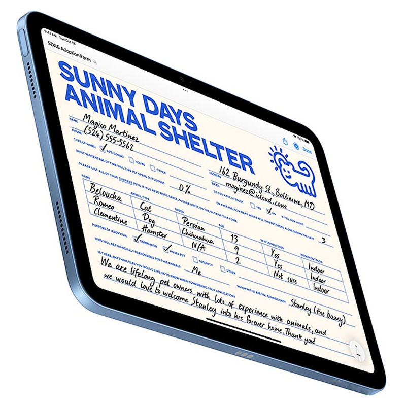 دوربینهای ۱۲ مگاپیکسلی پشت و جلو مجهز به Center Stage، کیفیت مناسبی برای یک تبلت دارند. عمر باتری مانند همیشه عالی است و تا ۱۰ ساعت استفادهی مداوم را فراهم میکند. اتصالات شامل Wi-Fi 6، بلوتوث 5.3 و پورت USB-C 2.0 است و با نسل اول قلم اپل و کیبورد Magic Keyboard Folio سازگار است.
