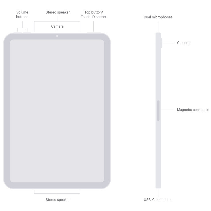صفحه نمایش ۸.۳ اینچی Retina IPS LCD با رزولوشن ۲۲۶۶ در ۱۴۸۸ پیکسل و تراکم ۳۲۷ پیکسل بر اینچ، وضوح بینظیری برای این اندازه ارائه میدهد. پشتیبانی از Wide color (P3) و فناوری True Tone باعث نمایش دقیق رنگها و تطبیق نور با محیط میشود، هرچند نرخ نوسازی ۶۰ هرتز نسبت به رقبا کمی محدود به نظر میرسد. نسبت تصویر ۳:۲ و روشنایی تا ۵۰۰ نیت، تجربه دیدن فیلم و کار با محتواهای گرافیکی را بهینه کرده است.