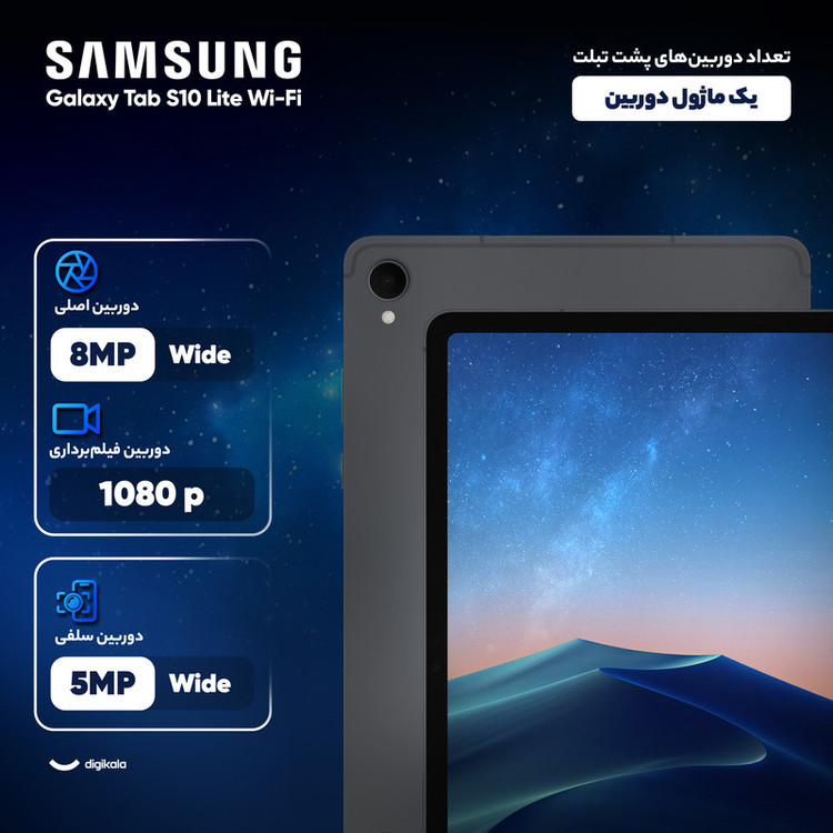 تبلت 10.9 اینچ سامسونگ مدل Galaxy Tab S10 Lite Wi-Fi با ظرفیت 128 گیگابایت و رم 6 گیگابایت، رزولوشن دوربین اصلی ۸ مگاپیکسل، پشتیبانی از قلم