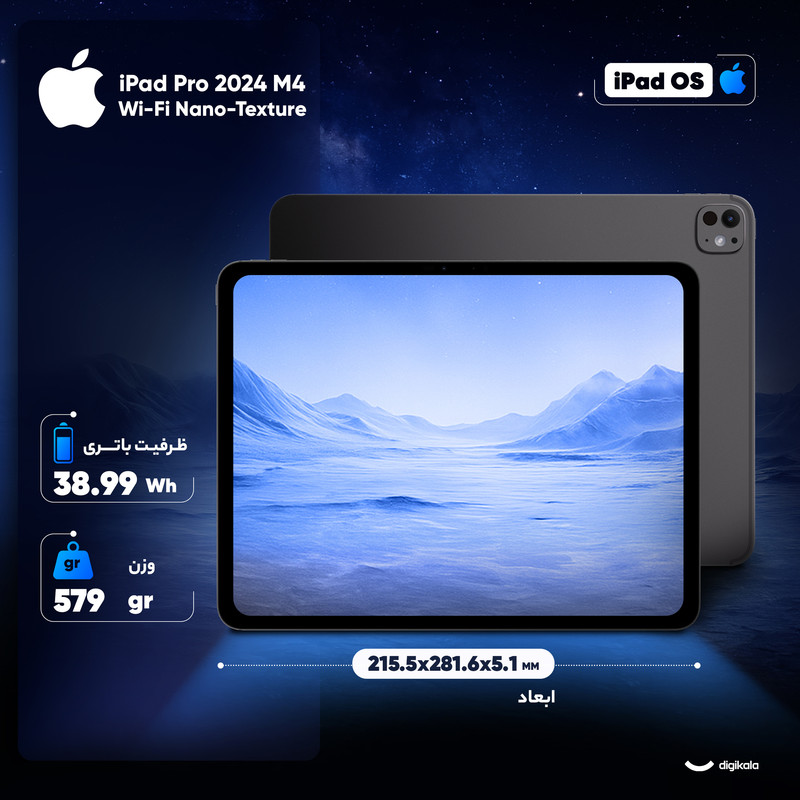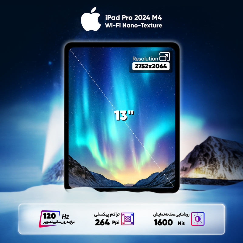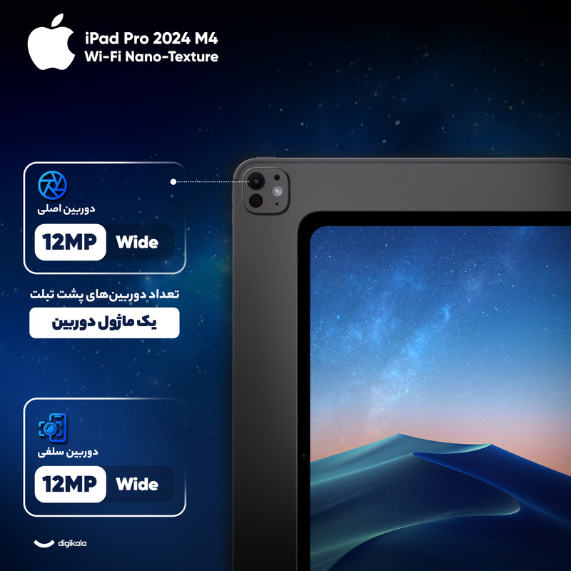اپل بار دیگر لقب قدرتمندترین تبلت را با iPad Pro 2024 M4 از آن خود کرد. این تبلت اپل مجهز به پیشرفتهترین پردازنده ARM یعنی چیپ M4 بوده و علاوه بر آن، طراحی ظاهری آن هم دچارتغییرات اساسی شده است. به طور کلی وزن و ضخامت این دستگاه تا حد چشمگیری نسبت به نسل قبل کاهش یافته و از این نسل از آیپد پرو به عنوان باریکترین تبلت تولید شده یاد میشود. همچنین، پردازش گرافیکی آیپد پرو تا 4 برابر سریعتر در تدوین ویدئو و یا انجام بازیها است. تغییر عمده دیگر در ساختار صفحه نمایش آیپد پرو رخ داده است که شامل کنتراست تصویر بالا با نسبت 1 به 2,000,00 ، وضوح فوقالعاده با رزولوشن چشمگیر و تعداد زیادی ویژگیهای مختلف میشوند. لازم به ذکر است که این نسل از آیپد پرو به نحوی طراحی شده که با جدیدتری نسل از قلمهای هوشمند اپل از جمله Apple Pencil Pro سازگاری داشته باشد و همانند گذشته میتوان از فریم آن برای اتصال قلم استفاده کرد. دوربین اصلی آیپد پرو با سنسور 12 مگاپیکسلی و دریچه لنز عریض به همراه اسکنر LiDAR با عملکرد هوشمندانه خود امکانات فوقالعادهای را در اختیار دارندگانش قرار میدهد. در نهایت، دوربین سلفی فوقعریض این تبلت با سنسور 12 مگاپیکسلی که با فناوری ویژه در لبه سمت راست آیپد جای گرفته، به صورت Landscape میتواند بهترینها را رقم بزند و تجربهای جذاب از عکاسی سلفی را به ارمغان بیاورد. ناگفته نماند که شیشه نمایشگر نسخه یک ترابایتی و دو ترابایتی این تبلت به بافت نانو مجهز شده است. همچنین این تبلت به همراه کابل شارژر USB-C و آداپتور شارژر 20 واتی عرضه میشود و میتوان کیبورد و قلم آن را به صورت جداگانه خریداری کرد.