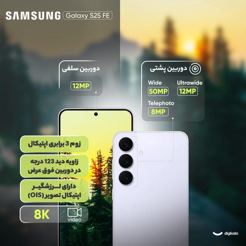 سامسونگ با معرفی Galaxy S25 FE بار دیگر نشان داد که خانواده FE جذابترین قاتل پرچمدار بازار گوشیهای میانرده است. این گوشی با طراحی لوکس از جنس شیشه و فریم آلومینیومی مقاوم، گواهی IP68 و رنگهای جذاب ظاهری مدرن و درعینحال مقاوم دارد. نمایشگر 6.7 اینچی Dynamic LTPO AMOLED 2X با نرخ نوسازی 120 هرتز، روشنایی 1900 نیت و پشتیبانی ازHDR10+، کیفیتی کمنظیر برای تماشای فیلم و اجرای بازی ارائه میدهد. قلب تپنده دستگاه پردازنده قدرتمند Exynos 2400 است که به همراه گرافیک Xclipse 940 و 8 گیگابایت رم، اجرای روان برنامهها و بازیهای سنگین را تضمین میکند. دوربین سهگانه شامل لنز اصلی 50 مگاپیکسلی با لرزشگیر اپتیکال تصویر، لنز تلهفوتو 8 مگاپیکسلی با زوم اپتیکال 3 برابری و لنز اولتراواید 12 مگاپیکسلی، تجربهای کامل در عکاسی فراهم میسازد. فیلمبرداری تا وضوح 8K و سلفی 12 مگاپیکسلی با پشتیبانی از فیلمبرداری 4K نیز کیفیتی عالی برای تولید کنندگان محتوا ارائه میدهد. باتری 4900 میلیآمپرساعتی با پشتیبانی از شارژ سریع 45 واتی امکان 65 درصد شارژ در 30 دقیقه را فراهم میکند. از طرفی شارژ بیسیم 15 وات و شارژ معکوس، خیال کاربران را از بابت انرژی راحت میکند. این گوشی با اندروید 16 و One UI 8 عرضه شده و سامسونگ وعده 7 بهروزرسانی اصلی اندروید را داده است که فوقالعاده است. بهطور کلی، Galaxy S25 FE ترکیبی از طراحی پریمیوم، سختافزار قدرتمند، دوربین توانمند و قیمت مناسب است و یکی از بهترین گزینهها برای خرید در سال 2025 محسوب میشود.
