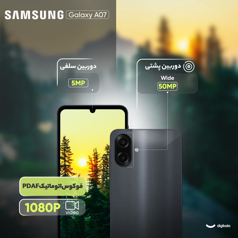 گوشی سامسونگ Galaxy A07 بازیگر جدید سامسونگ در بازار گوشیهای اقتصادی است که تلاش میکند امکانات زیادی را در بازه قیمتی پایین ارائه دهد. این گوشی به پردازنده مدیاتک Helio G99 مجهز است و تجربهای روان در اجرای برنامههای روزمره و بازيهای سبک فراهم میکند. صفحه نمایش ۶.۷ اینچی از نوع LCD با وضوح HD+ و نرخ نوسازی ۹۰ هرتز تعادل خوبی میان وضوح تصویر و مصرف انرژی ارائه میدهد و در عین حال حرکت بین منوها و صفحات مختلف را نرمتر جلوه میدهد. در بخش دوربین، Galaxy A07 یک ترکیب دوگانه ارائه میدهد. دوربین اصلی ۵۰ مگاپیکسلی با دیافراگم f/1.8 توانایی ثبت تصاویر واضح در شرایط نوری مناسب را دارد و دوربین دوم ۲ مگاپیکسلی نیز از نوع عمقسنج است. برای دوربین سلفی در این مدل، سامسونگ از یک سنسور ۸ مگاپیکسلی استفاده کرده است. باتری بزرگ ۵۰۰۰ میلی آمپر ساعتی این دستگاه نشان دهنده دوام بالای باتری در استفاده روزانه است و با پشتیبانی از شارژ سریع ۲۵ واتی، زمان مورد نیاز برای شارژ دستگاه را کاهش میدهد. برای بدنه، سامسونگ از ترکیبی سبک و در عین حال مقاوم استفاده کرده است. پوشش پشتی از پلیمر تقویت شده با فیبر شیشه ساخته شده و از استاندارد IP54 نیز پشتیبانی میکند تا گوشی تا حدودی در برابر پاشش آب و گردوغبار مقاوم باشد. این گوشی با سیستم عامل اندروید ۱۵ و با رابط کاربری One UI 7 عرضه شده است و سامسونگ وعده ارتقاء نرم افزاری و امنیتی را برای شش سال داده است. به طور کلی، Galaxy A07 به عنوان گزینهای مقرون به صرفه برای کسانی به شمار میرود که به دنبال تجربهای روان با امکانات مناسباند.